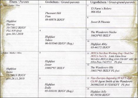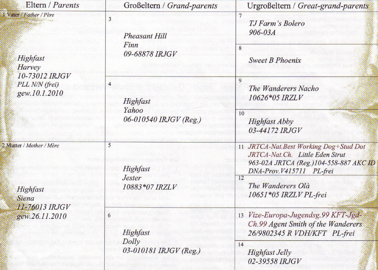 Vater: Highfast Harvey von Pheasant Hill Finn und Highfast Yahoo